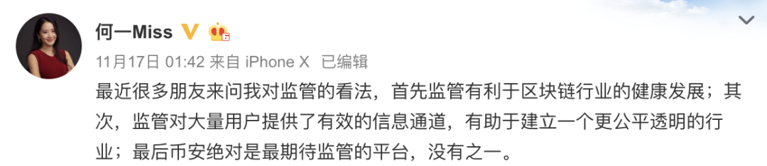 然而成英雄者寥寥无几,币安“被上海”后,这位喜欢在微博发自拍的公关“一姐”何一转发了一条媒体撰写的名为《谁在唱衰币安》的文章,并评论说:“航行中必然遇到从各个方面袭来的劲风,然而每一阵风都会加快你的航速。只要你稳住航舵,即使是暴风雨,也不会使你偏离航向。”