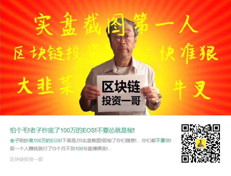 ▊ 最后,要强烈推荐一下一位兄弟,中国实盘截图投资区块链第一人:区块链投资一哥!长按以下二维码速速关注!他成功在3月预言了EOS上100!